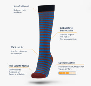 Sicherer Halt an der oberen Wade – ohne zu verrutschen. Kniestrümpfe von Super Socks aus hochwertiger, gekämmter Baumwolle mit optimaler Passform garantieren höchsten Tragekomfort. Das mitteldicke Garn und die angenehme 3D Stretch Haptik liegen dank nahtreduzierter Zehen- und Fersenpartien passgenau an Fuß und Bein. Das gerippte Bündchen sitzt je nach Wadenumfang sicher bis straff unter dem Kniegelenk und die hohe Atmungsaktivität der Materialien schenken Freude am Tragen von früh bis spät. Ein Paar bunte Kniesocken sind drei zu wenig? Hier finden Sie die Knicks Box mit allen 4 Designs.