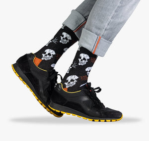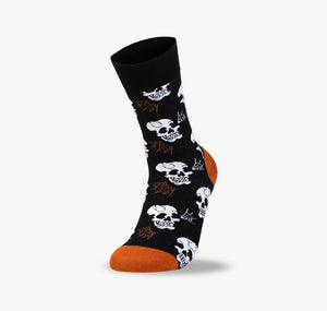 Totenköpfe 💀 können gruselig sein – und flauschig – so wie die Halloween Socks, als Einzelpaar oder im Mixed Double 4er-Pack. Optisch geht die Reise Richtung Geisterbahn – Endstation Gruselkabinett, haptisch ist man aber ab dem ersten Tragen im Sockenhimmel und feiert optimale Passform, gekämmte Baumwolle 🧶 und die mitteldünnen Webstoffe von morgens bis abends. Halloween Socken für Damen und Herren passen dank des ergonomischen Designs, dem bewährten 3D Stretch und der Unisex Passform Frauen und Männer gleichermaßen gut und wem ein Paar zu wenig ist, hier gibt’s drei Paar in Funky Skulls 3er-Pack.