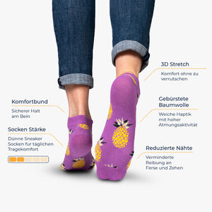 Bequem, ohne lästiges verrutschen und aus gekämmter Baumwolle. Die komfortabelsten Sneaker Socken aus dünnem Garn 🧶 und mit reduzierten Nähten für höchsten Tragekomfort von früh bis spät.