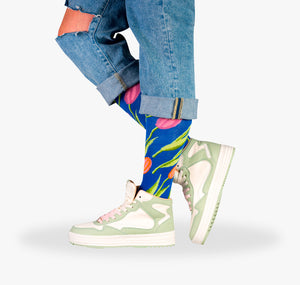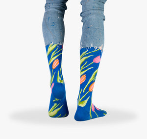 Frisch wie holländische Tulpen 🌷 bleiben Fuß und Bein in SUPER SOCKS Tulpen Kniestrümpfe für Damen und Herren, dank der hohen Atmungsaktivität und halten dabei deutlich länger! Durch verstärkte und nahtreduzierte Teilbereichen an Fuß und Ferse wird Reibung im Schuh gemindert, gleichzeitig sorgt feine Baumwolle 🧶 für höchsten Tragekomfort von früh bis spät. Socken Strauß gefällig? Den gibt’s hier, in der Knicks Flower Box für florale Farbe an der Wade.