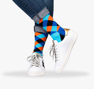 Für Damen und Herren. Bunte Crew Socken aus gekämmter Baumwolle, mit komfortablem Sitz an der mittleren Wade. Optimaler Tragekomfort von früh bis spät.