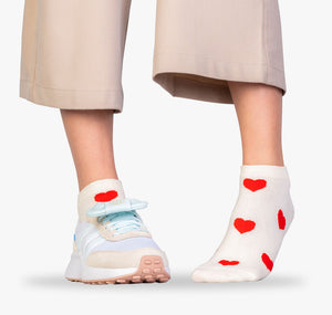 Mit den Classics Hearts Sneaker Socken macht Mann für Frau alles richtig: Ob am Hochzeitstag, oder am „ich habe den Hochzeitstag vergessen“ Tag, super-komfortable weiße Sneaker Socken mit roten Herzen lassen Damenaugen strahlen. Detailliert verarbeitet, langlebig & hergestellt aus flauschig-weicher 🧶 Baumwolle. Mehr Herzen, mehr Liebe? Der Ultra Heart 6er-Pack. Sechs Paar Herzen Sneaker Socken, sechsmal Freude am Tragen.