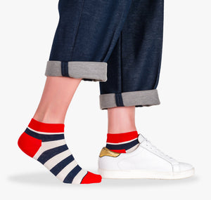 Ob bunte Streifen oder bunt gestreift: Sneaker Socken für Damen und Herren aus feiner Baumwolle, mit ultra-bequemer Passform 🧶 und hergestellt aus dünnem Garn fühlen sich im Schuh gut an und sehen ohne noch besser aus. Dank weicher Haptik und dem bewährten 3D-Stretch halten die bunten Sneakersocken an Fuß und Bein ohne lästigen Verrutschen für absolute Freude am Tragen. Wer Streifen sagt, muss auch Punkte sagen können? Genau, deshalb gibt’s alle Socken auch als bunte Sneaker Socken Geschenksets erhältlich.