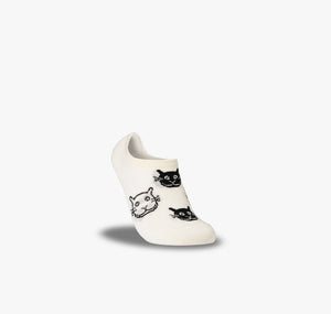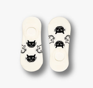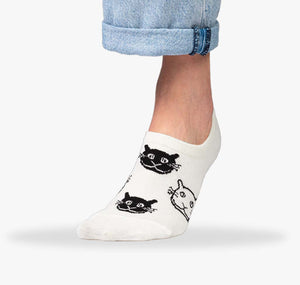 Komfort, Halt und Freude am Tragen – die Füßlinge aus der Katzen Serie bestechen haptisch mit flauschig-weicher Baumwolle und ergonomisch geformten Silikon Streifen an den Fersen. Die 😸 Katzengesichter lachen auf weißen Füßlingen, aber unsichtbar im Schuh, ohne verrutschen und mit schneller Rücktrocknung, versprechen die Katzen Füßlinge ein angenehmes Tragegefühl 🧶 und garantiert sicheren Halt an Fuß und Ferse.