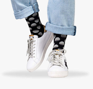 Cool und relaxed posieren die grau-schattierten Punkte auf den schwarzen Socken. Gepaart mit feinster, leicht angerauter Baumwolle 🧶 und dem 3D Stretchverfahren, schenkt dieses Modell pure Freude am Tragen. Formstabilität sorgt für die originale Super Socks Passform und zusammen mit der sorgfältigen Verarbeitung von atmungsaktiver Baumwolle wird Reibungen an den Belastungszonen entgegengewirkt. Mehr haptischen Tragekomfort gibt’s hier, im Classic Box 2er-Pack.