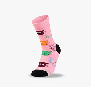 Flauschig – wie das Original 🐈 und gar nicht kratzbürstig dank gekämmter Baumwoll., Pinke Katzensocken für Damen und Herren mit ergonomischer Passform und der bewährten 3D Stretch Haptik. Das mitteldünne Garn 🧶 und der gerippte Komfortbund liegen an der unteren Wade, wie die Mieze auf der Couch. Freude am Tragen versprühen die Socken mit Katzengesichtern bei Damen und Herren gleichermaßen, denn die Unisex Passform schmiegt sich an Fuß und Bein und macht keinen Unterschied zwischen Mann und Frau. Ein Paar ist drei zu wenig? Kein Problem, hier gibt’s vier Paar in der Muti Box.