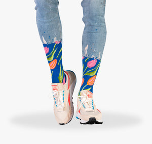 Kommen ganz ohne Gießen aus – die Kniestrümpfe im Knicks Flower 💐 4er-Pack für Damen & Herren. Viermal blumiger Tragekomfort dank flauschig-weicher Baumwolle und dem ultra-komfortablen 3D-Stretch Garn für absolute Freude am Tragen. Mehr noch, die reduzierten Nähte 🧶 an Ferse und Zehen mindern Reibung an den Belastungszonen und apropos: Diese wurden verstärkt, damit die Tragefreuden deutlich länger andauern als beim Original. 4 Blümchen sind 3 zu viel? Kein Problem, bunte Kniestrümpfe sind bei SUPER SOCKS jederzeit auch als Einzelpaare erhältlich.