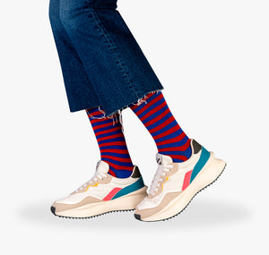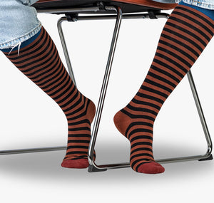 Wer gestreifte Kniestrümpfe mag, wird die Knicks Strips Box lieben! Drei Paar gestreifte Kniestrümpfe für Damen oder Herren, aus feiner Baumwolle 🧶, mit weichem Komfortbündchen und aufs Minimum reduzierten Nähten an Ferse und Zehen für maximalen Tragekomfort. Sicherer Halt an der oberen Wade wird durch ergonomische Passform unterstützt und sorgt zusammen mit dem atmungsaktiven und mitteldünnen Garn für Freude am Tragen 🥰 von früh bis spät. 3 Paar sind 2 zu viel? Kein Problem, alle Kniestrümpfe sind natürlich auch als Einzelpaare erhältlich.