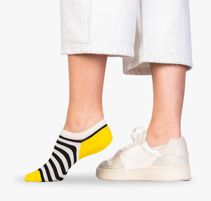 Das Beste kommt gleich am Anfang & nicht mehr zum Schluss. Angefangen mit dünnem Garn aus feiner 🧶 Baumwolle, über ergonomisch geformte Silikonstreifen an den Fersen für rutschfesten Halt, bis zu den reduzierten Nähten startet jeder Tag perfekt. Mit den schwarz-weiß gestreiften gelben Füßlingenvon SUPER SOCKS. Mehr gute Tage, mehr Freude? In der Triple Stripes Box gibts 3 Paar gestreifte Füßlinge für Damen und Herren.