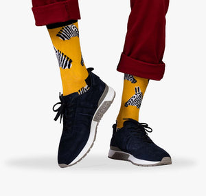 Zebras 🦓 sind von Natur aus gut gekleidet! Ob in der Savanne oder im Zoo, Zebra Socken lassen Träger:innen komfortablen Fußes durch den Tag traben. Das mitteldünne Garn schmiegt sich dank des ergonomischen 3D Stretches passgenau an den Fuß und Bein und die Komposition der 🧶 Webstoffe, sowie die sorgfältige Verarbeitung, sorgen selbst im Galopp des Alltages für ein angenehmes Tragegefühl, optimale Passform und sicheren Halt. Ein Paar ist zwei zu wenig? Tierische Sockenfreuden gibt’s auch im 3er-Pack, in der Urban Jungle Box für Damen und Herren.