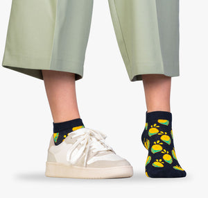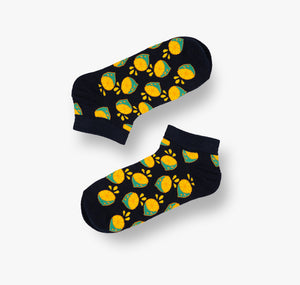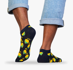 Aufmerksamkeit gefällig? Zitronen 🍋 Sneaker Socken sind dafür die beste Wahl! Mit frischem Zitronen-Design und der komfortablen 3D-Stretch-Haptik sorgen die bunten Sneakersocken für sensationelle Haptik 🧶 und coole Optik an Fuß und Bein. Hergestellt aus mittel dünnem Gran, mit sanfter Dämpfung an den Belastungszonen bleibt Schritt für Schritt nur ein Wunsch offen: mehr davon! Mehr feine Baumwolle, mehr bunte Designs und mehr Sneaker Socken gibts in der Vitamin C Sneaker Socken 3er-Pack für Damen und Herren.
